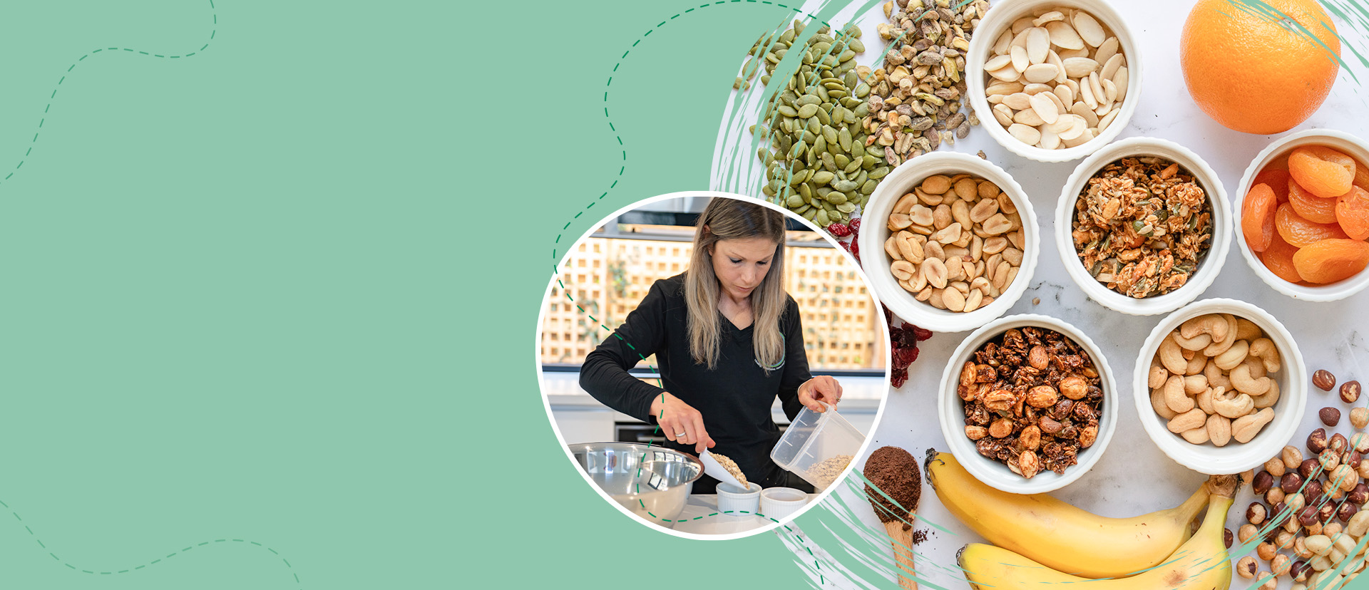 And of course, our granola comes in 6 different flavours – orange almond, banana cashew, coffee hazelnut, cranberry pistachio, choc peanut, and apricot macadamia. And to spice things up even more, we are always experimenting with new flavour combos so stay tuned for some limited-edition varieties in the future!